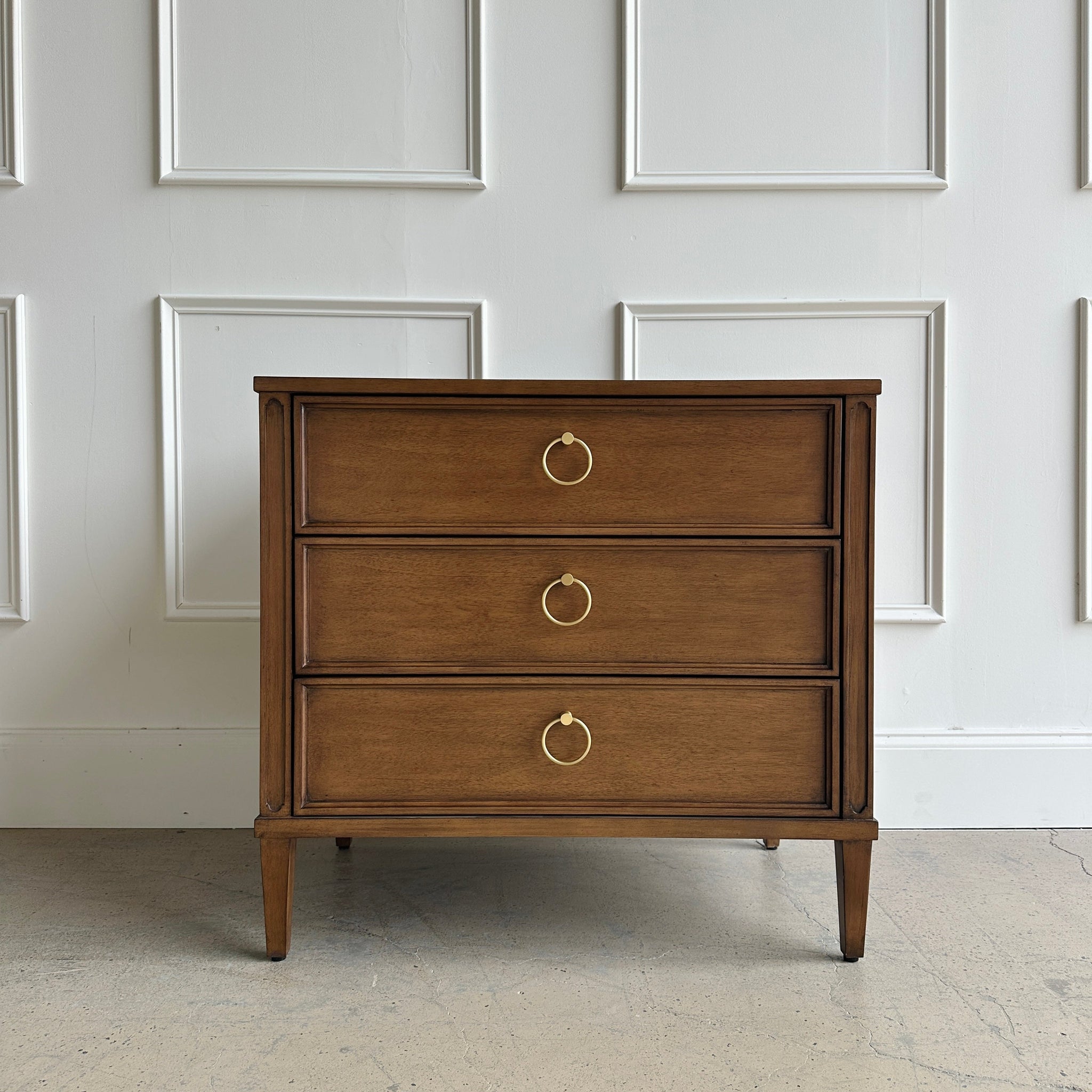 Framed drawer detailing and tapered legs for a refined silhouette