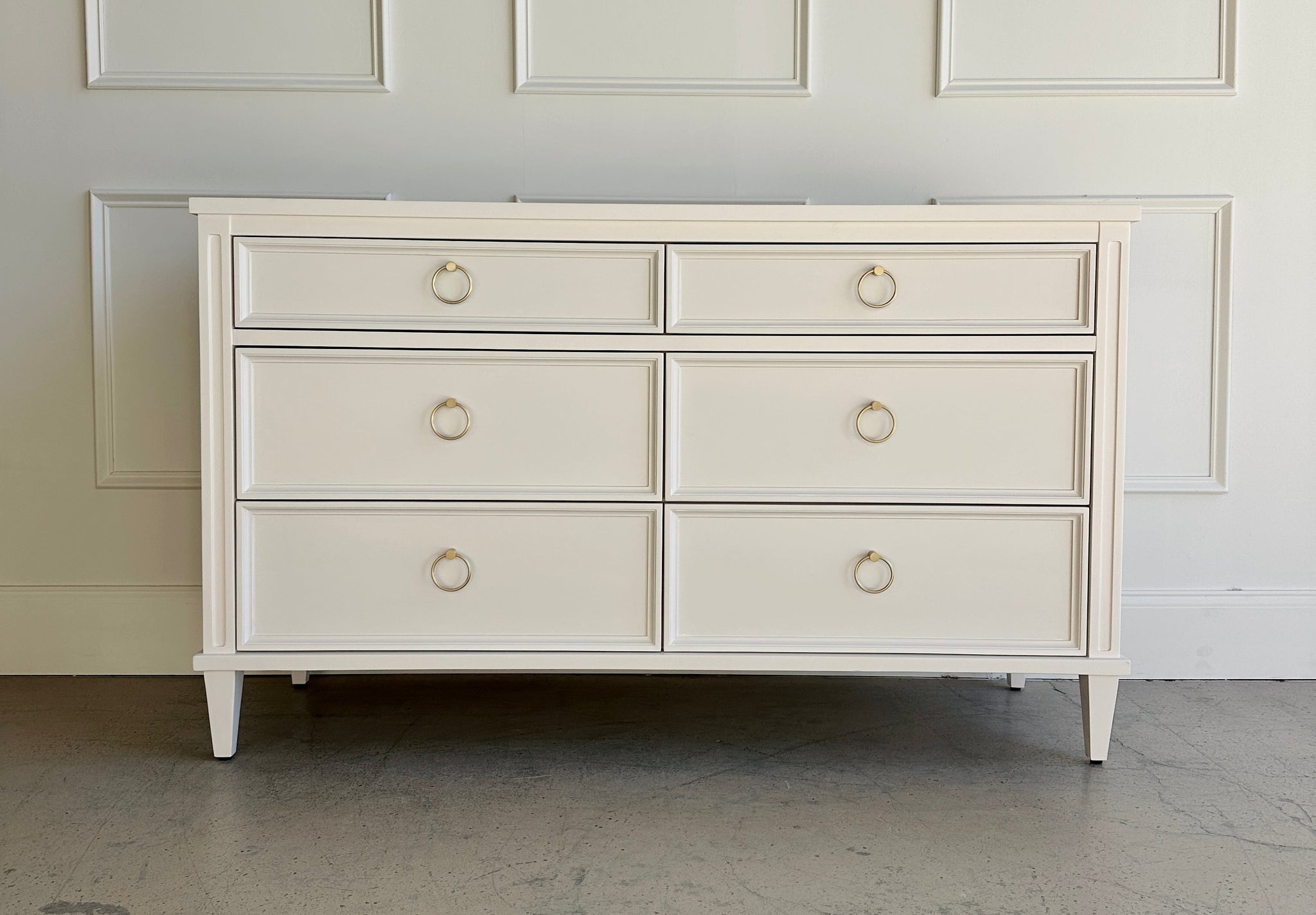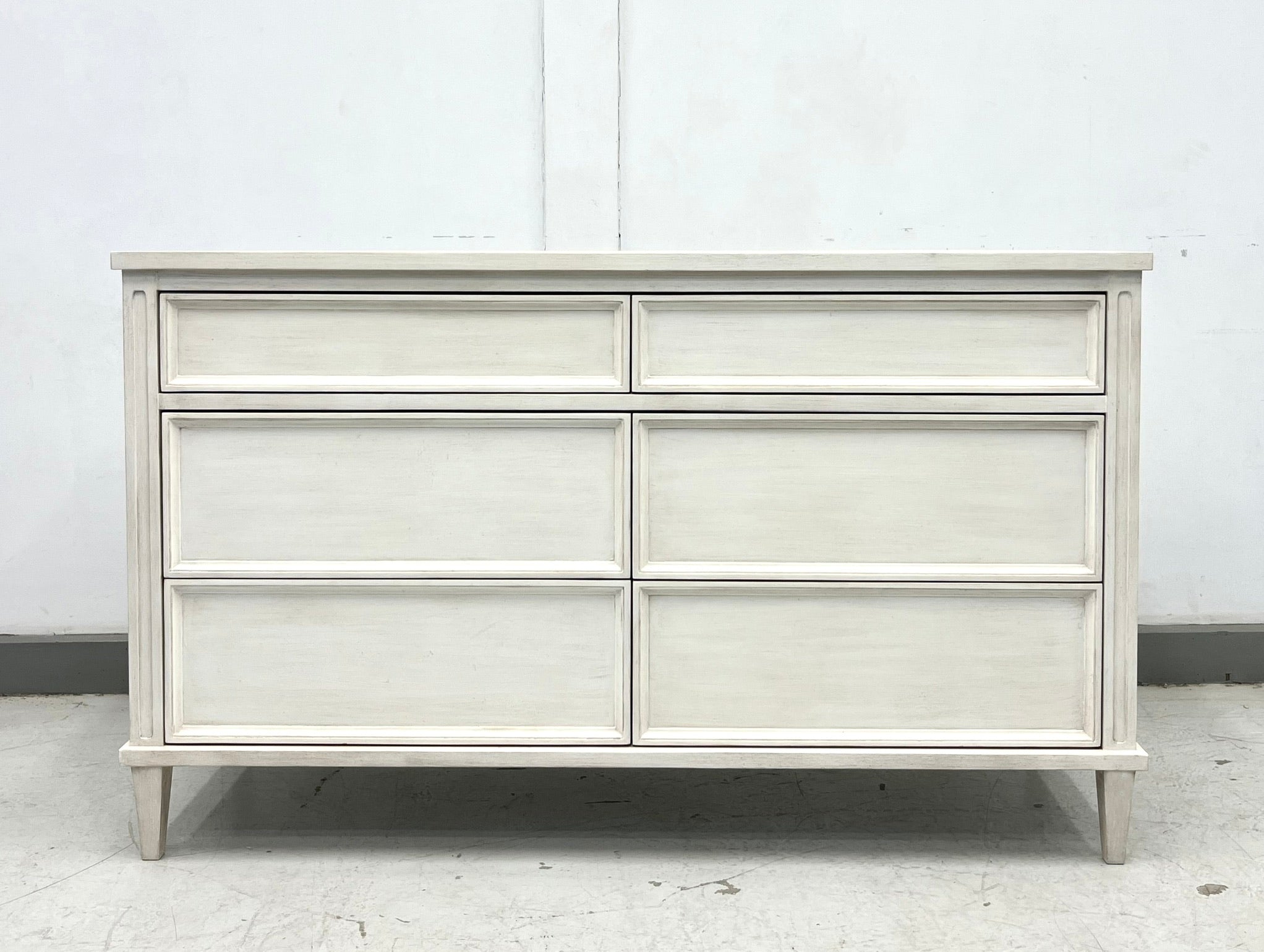 A study in balance, proportion, and quiet sophistication—the Avalaire 6 Drawer Dresser captures the refined aesthetic of the Good Bones Furniture Avalaire collection. With its crisp architectural framing, slender tapered legs, and flawless finish, it brings timeless design and modern precision together in perfect harmony.