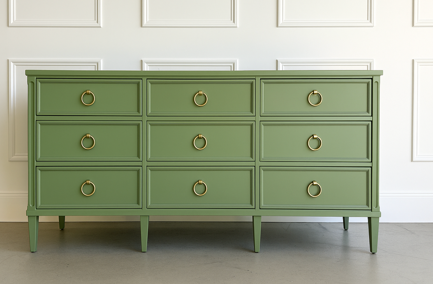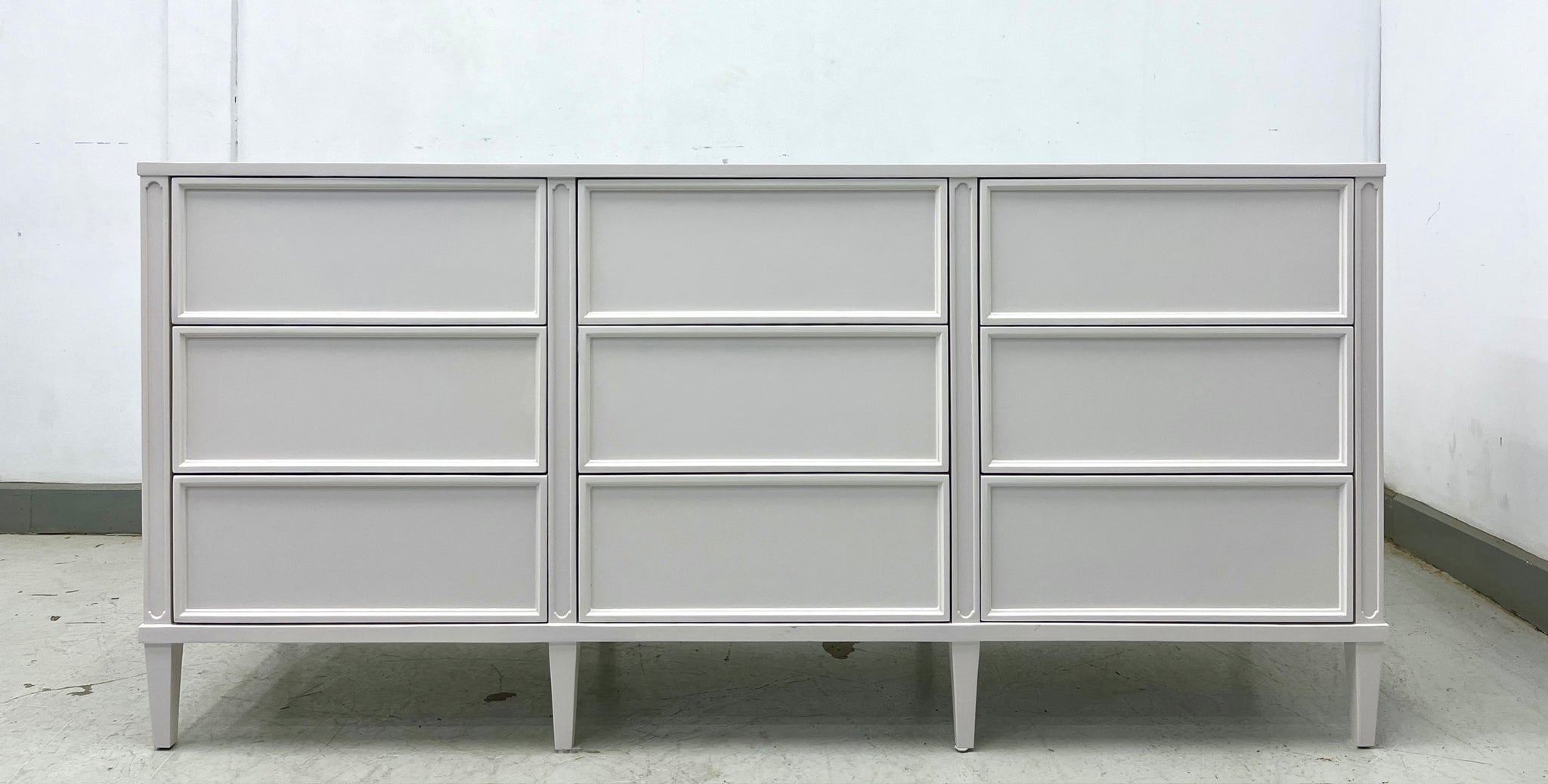 Defined by crisp architectural lines and timeless balance, the Avalaire 9 Drawer Dresser reflects the quiet sophistication of the Good Bones Furniture Avalaire collection—an exclusive line that blends classic craftsmanship with a modern, tailored edge. Each piece captures the precision and restraint that distinguish fine furniture built to last for generations.