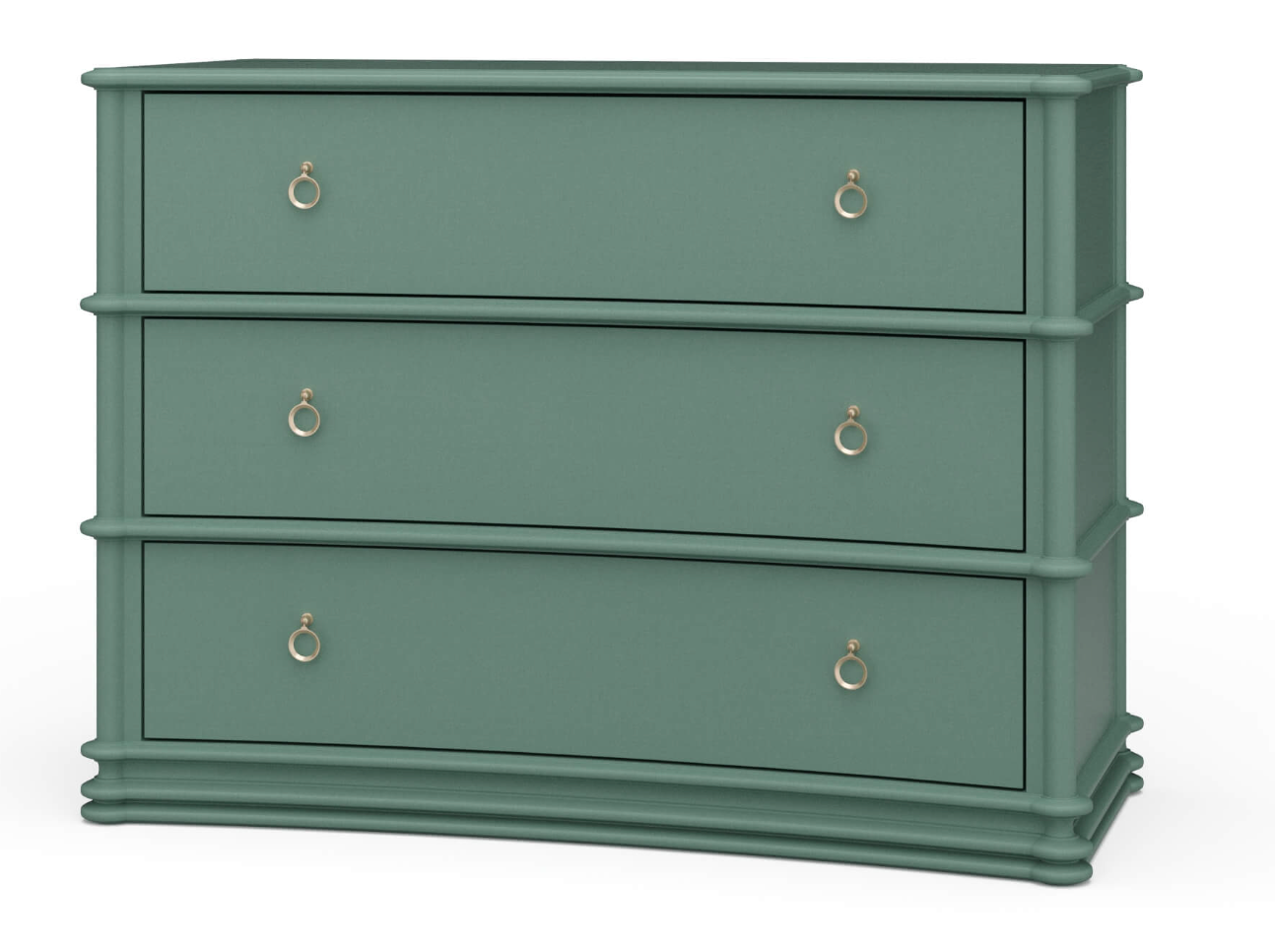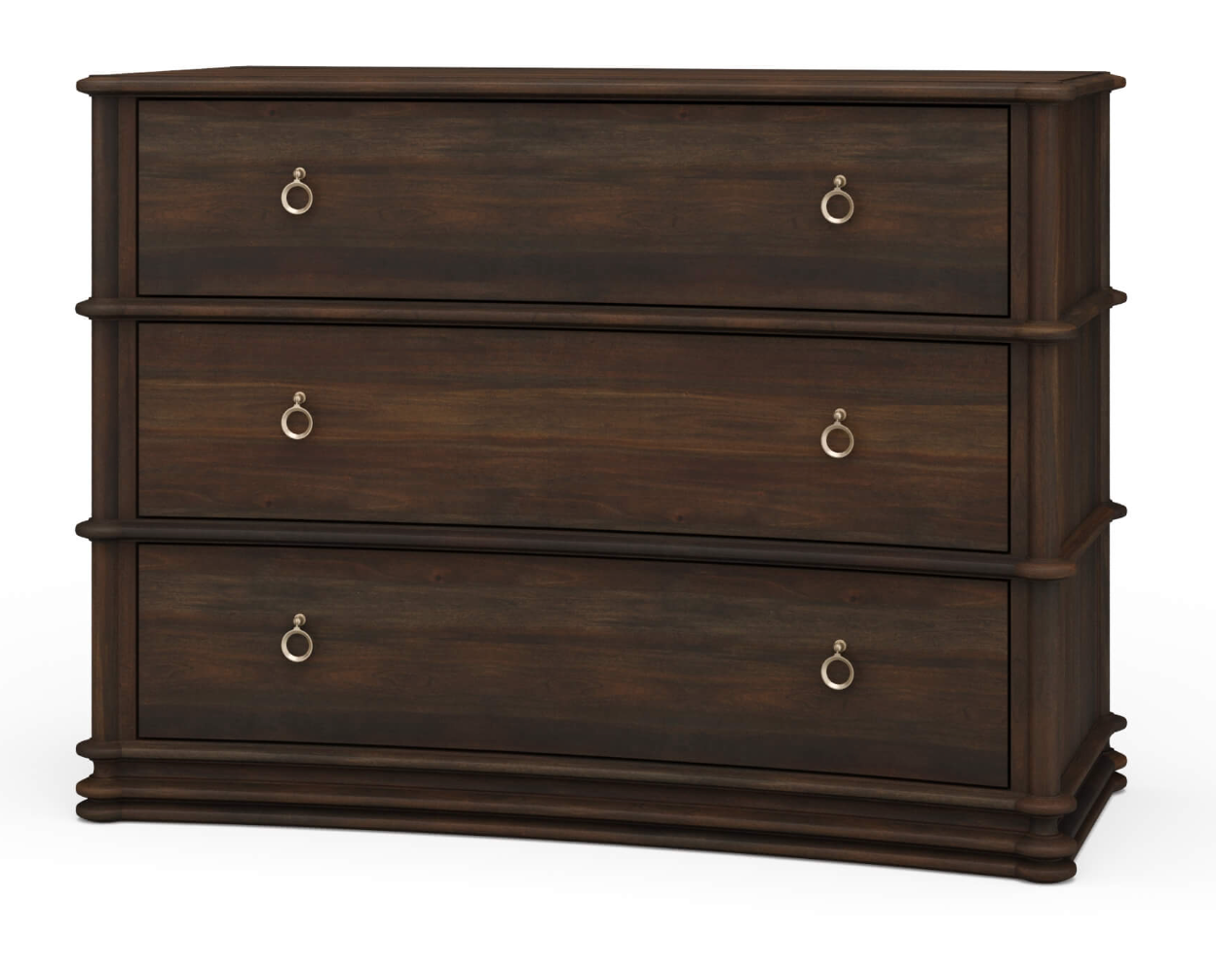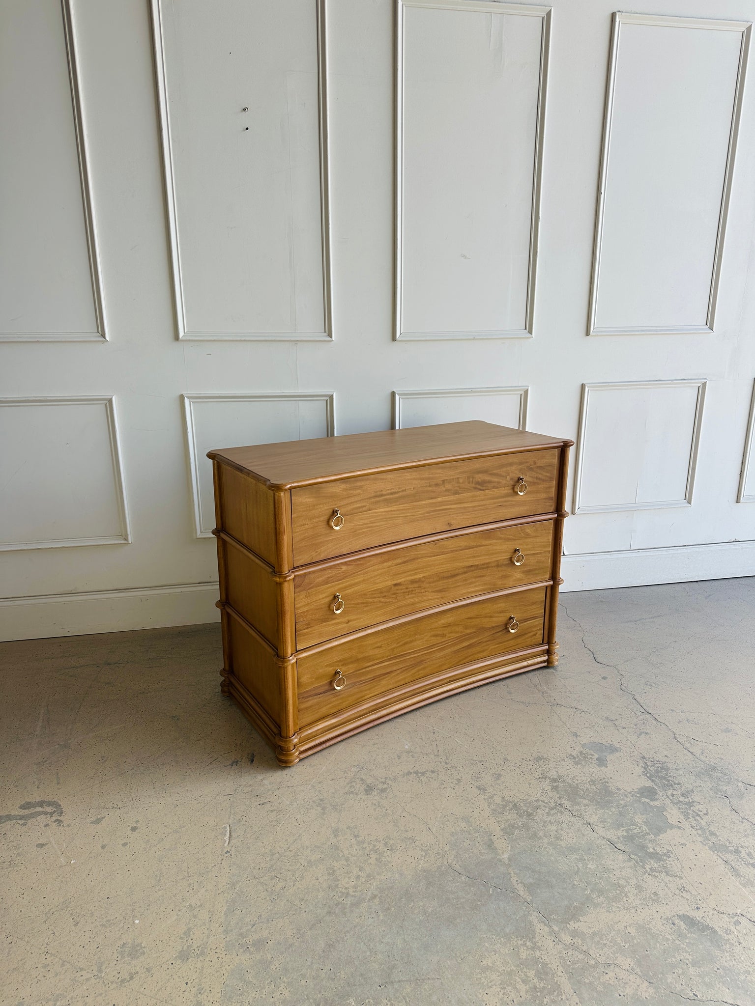 The subtly bowed drawers and rounded corners soften the form for a refined, tailored look. -