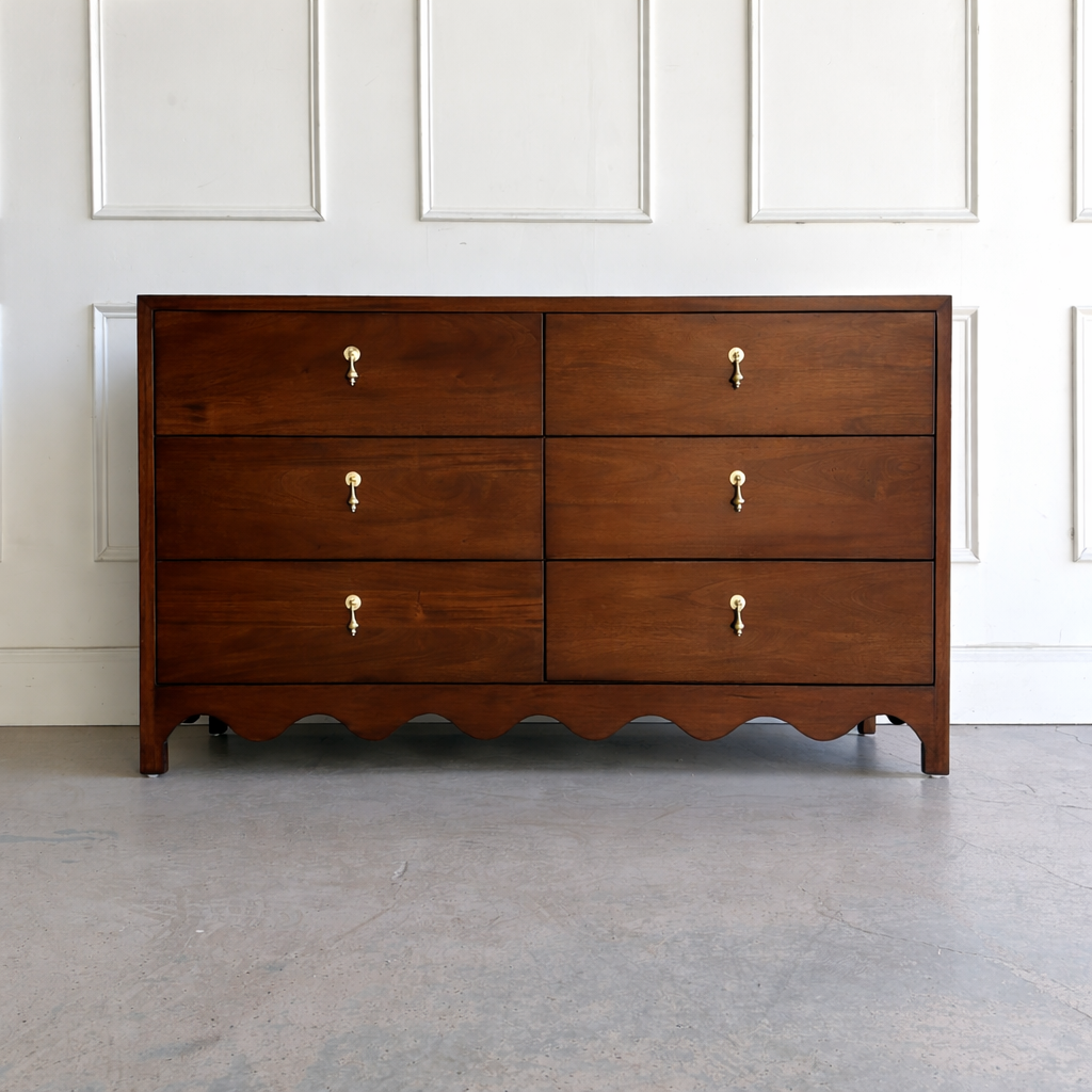 Clean-lined but full of character, the Chloe Dresser is a modern heirloom in the making. Its distinctive scalloped apron brings a playful architectural detail to this classic silhouette, while the six soft, self close drawers offer generous storage for clothing, linens, or daily essentials. Each drawer is expertly constructed for strength and longevity.