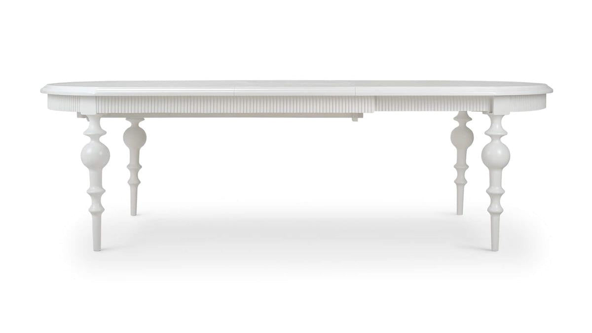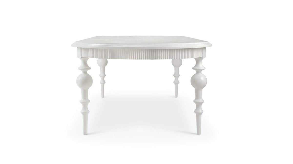 A self-storing butterfly leaf allows the table to expand seamlessly from 80 inches to 102 inches, offering flexibility for larger gatherings without compromising the table’s clean lines when fully closed. The extension mechanism is smooth and intuitive, keeping the focus on form and function rather than hardware or complexity.