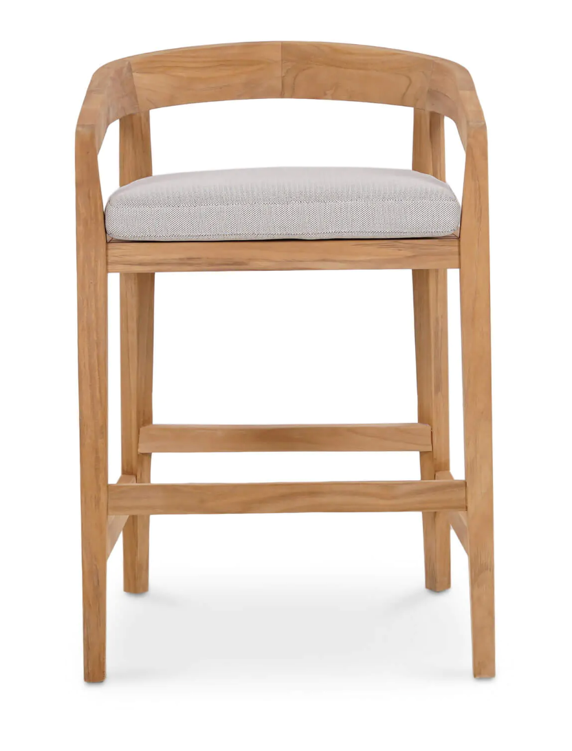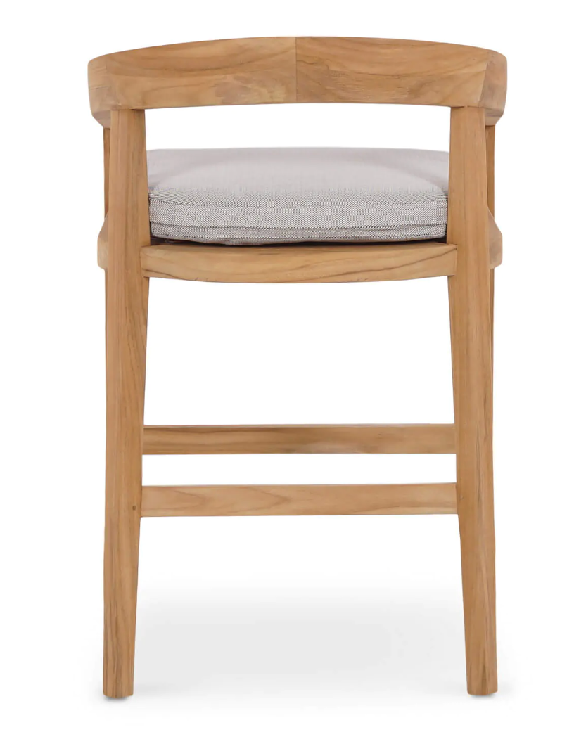 Elevate your outdoor entertaining with the Raleigh Outdoor Counter Stool, where refined design meets everyday comfort. Crafted from natural teak with a fine-sanded finish, this stool features a gracefully rounded back frame that offers a sculptural silhouette and supportive seating for outdoor bars and counters.