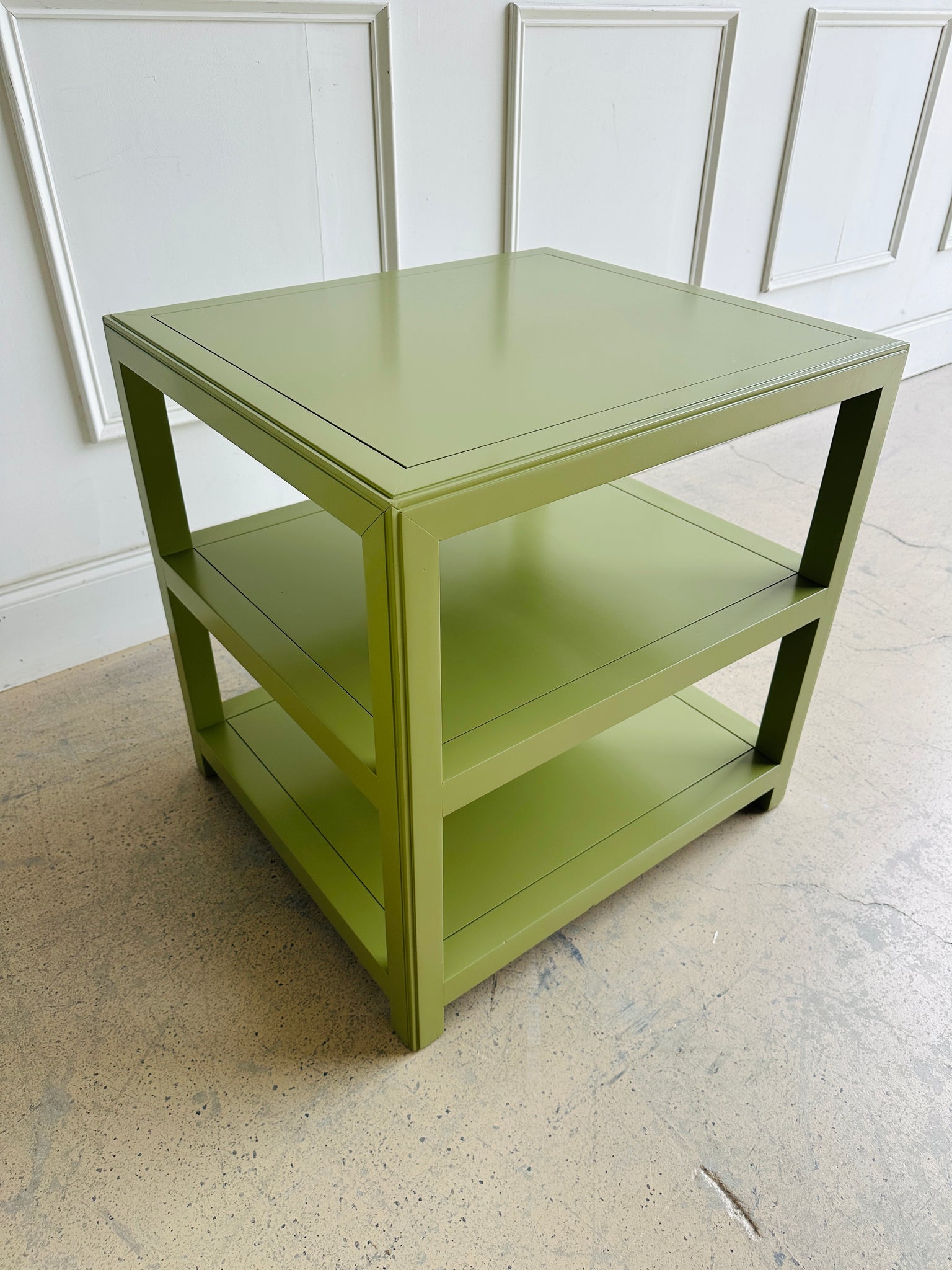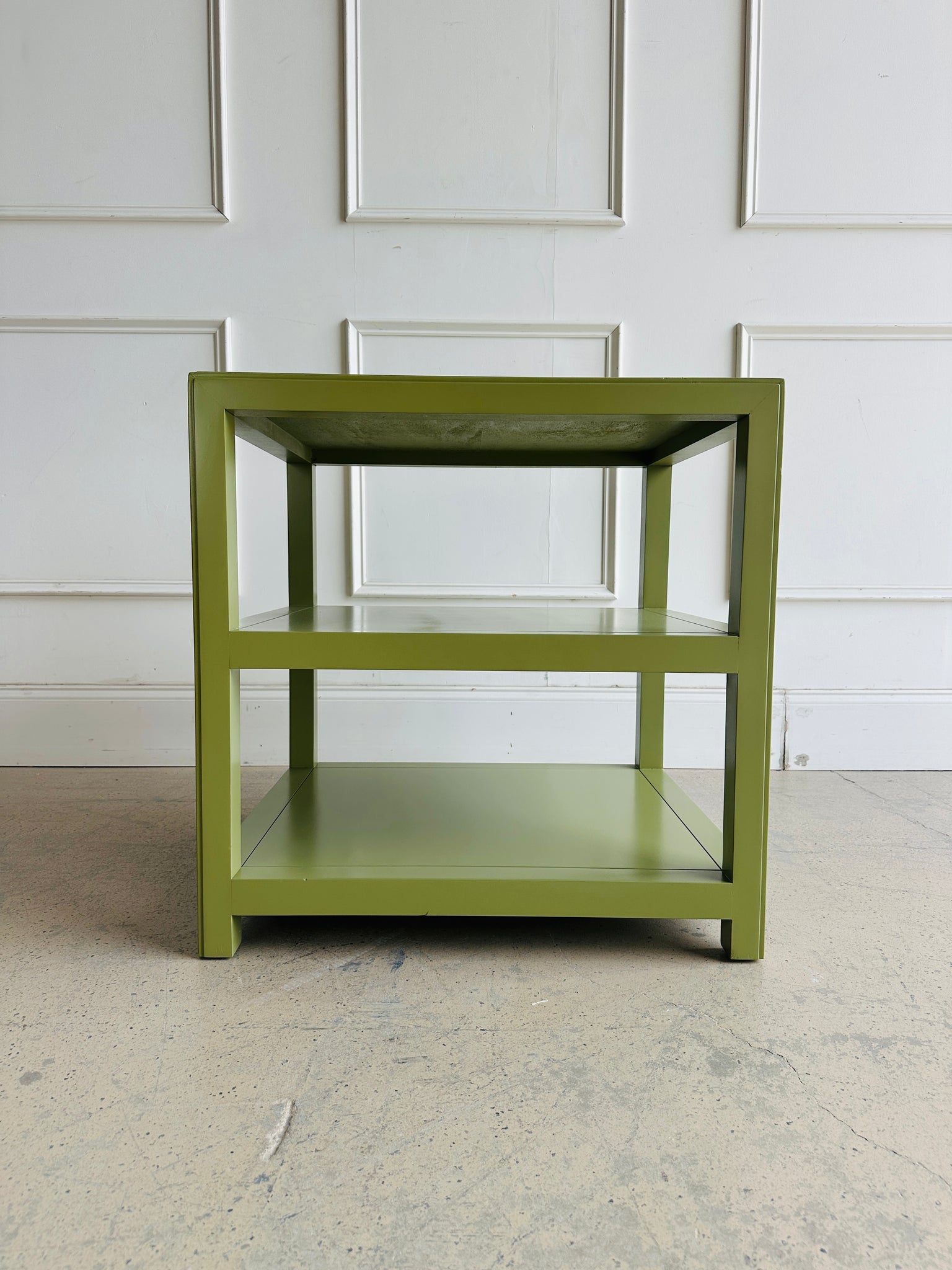 Lacquered in a custom green finish that brings an elevated elegant touch to modern and traditional spaces alike.