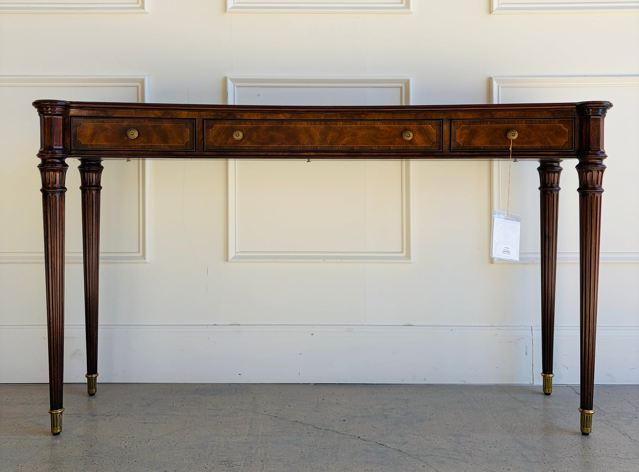 This console is inspired by an original Regency desk and reflects the refined craftsmanship associated with Theodore Alexander’s design legacy. The balance of rich veneers, subtle curvature, and traditional detailing makes it equally suited for formal interiors and more layered, collected spaces.