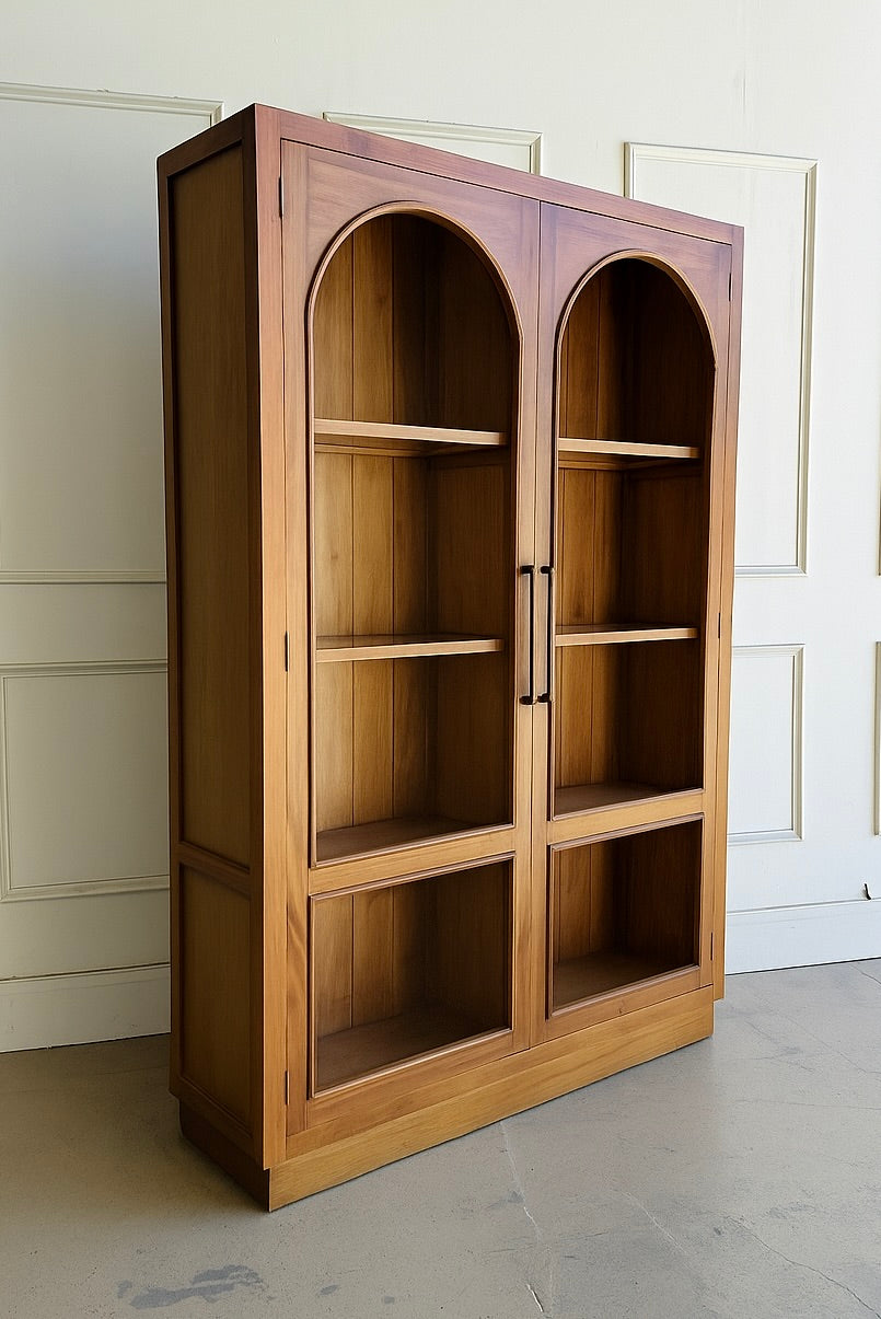 Whether styled with books, ceramics, or glassware, the Vannes adds architecture and warmth to any space, from dining room to library.