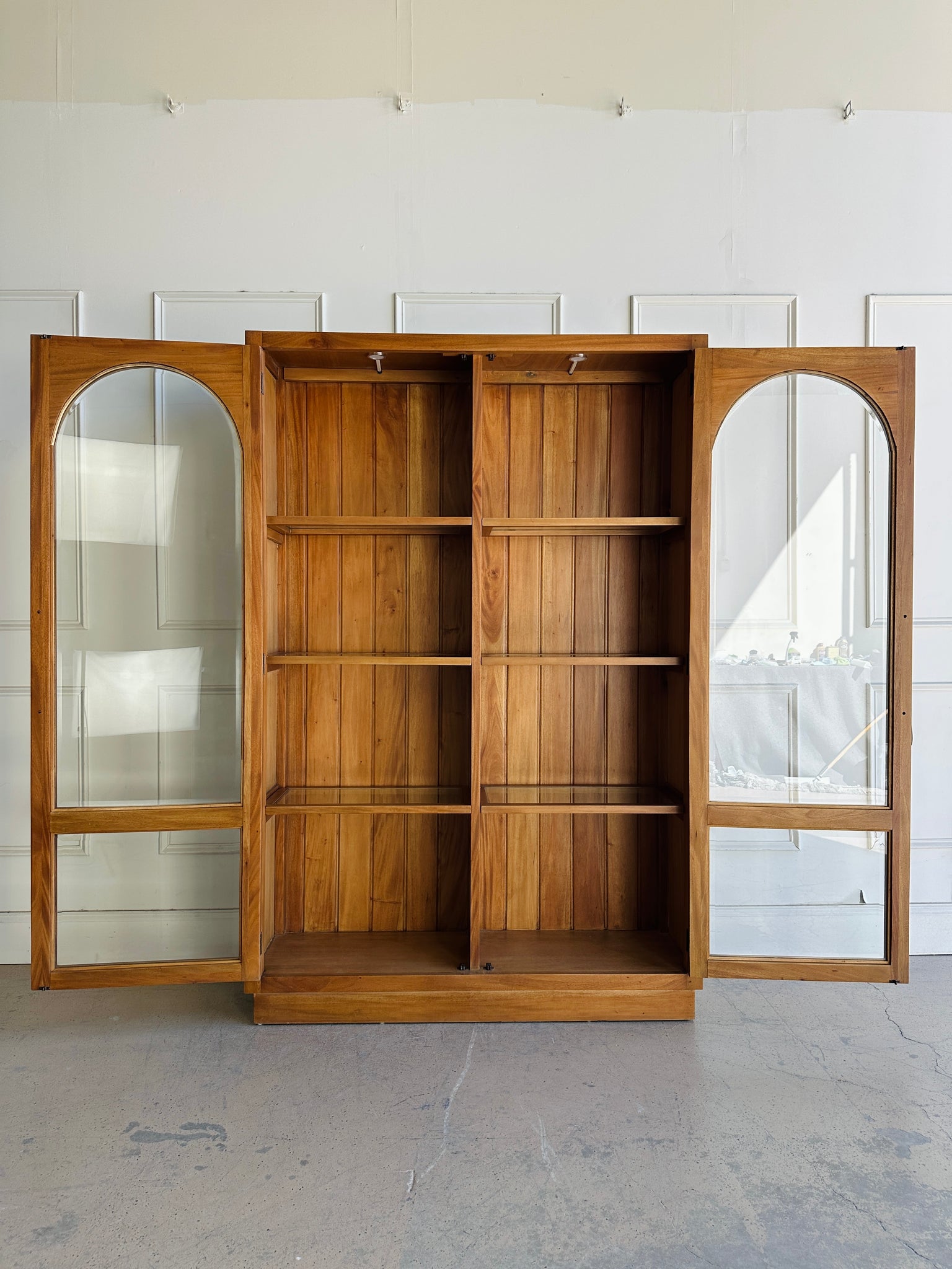 Distinctive arched frames with beveled glass for a classic, elevated look. -