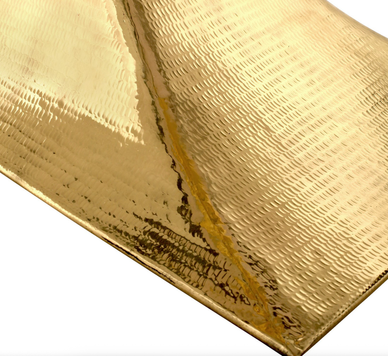 Hand-formed repoussé brass pedestal with radiant polished finish, sealed in clear lacquer