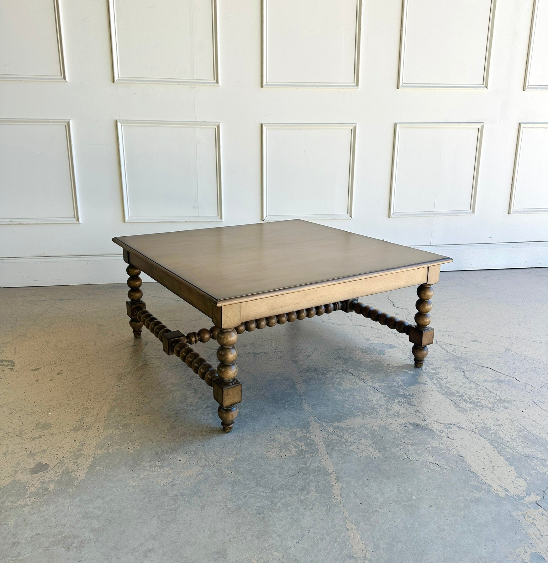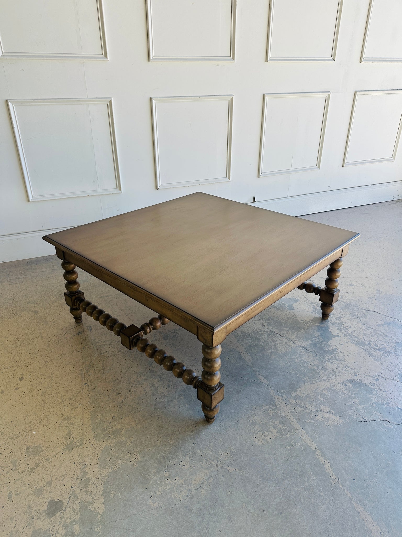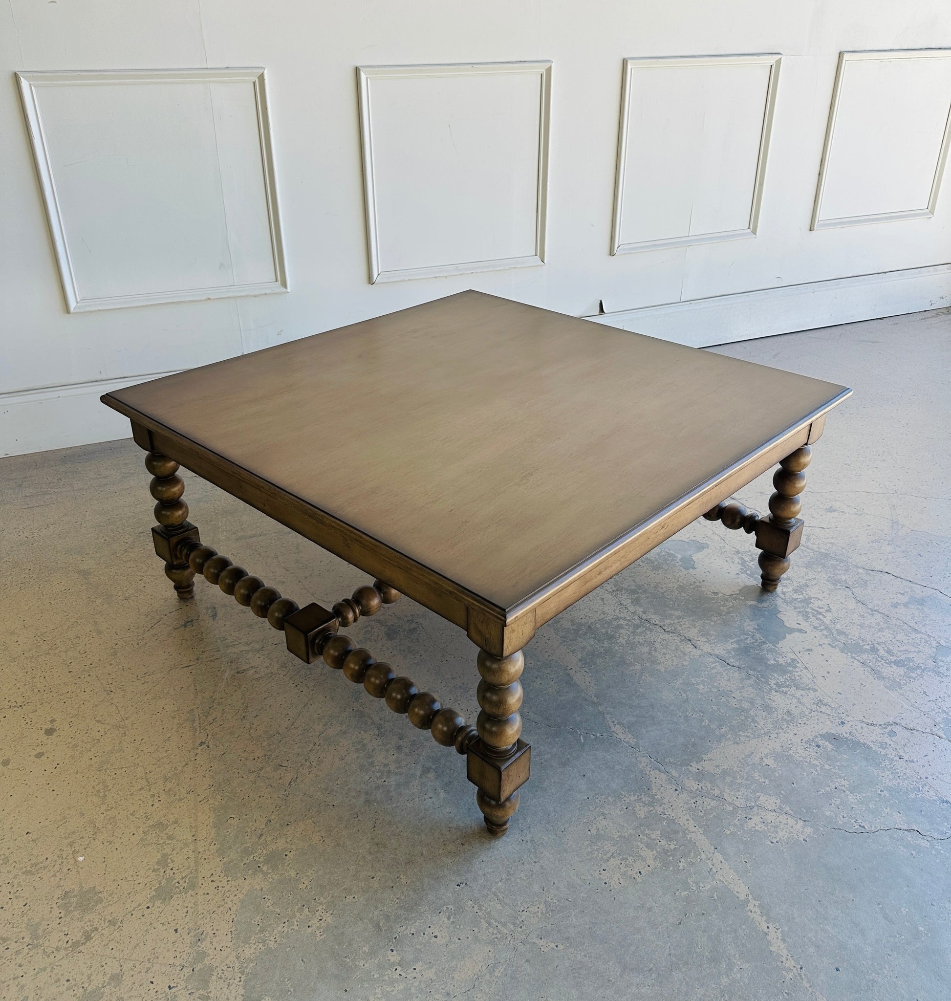 The Wellmington Coffee Table is a beautiful statement piece that brings both character and functionality to any living space. Crafted from solid Mango wood, it features stunning large bobbin legs and cross braces that highlight its traditional craftsmanship. The substantial square design ensures ample surface area, making it perfect for both decorative displays and everyday use.